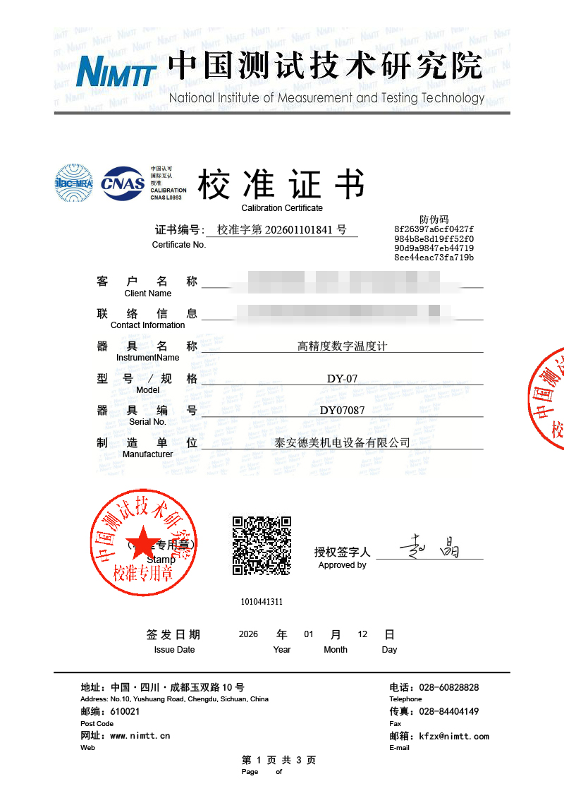 高精度數(shù)字溫度計-校準(zhǔn)證書 2026-1-26 本文被閱讀 38 次