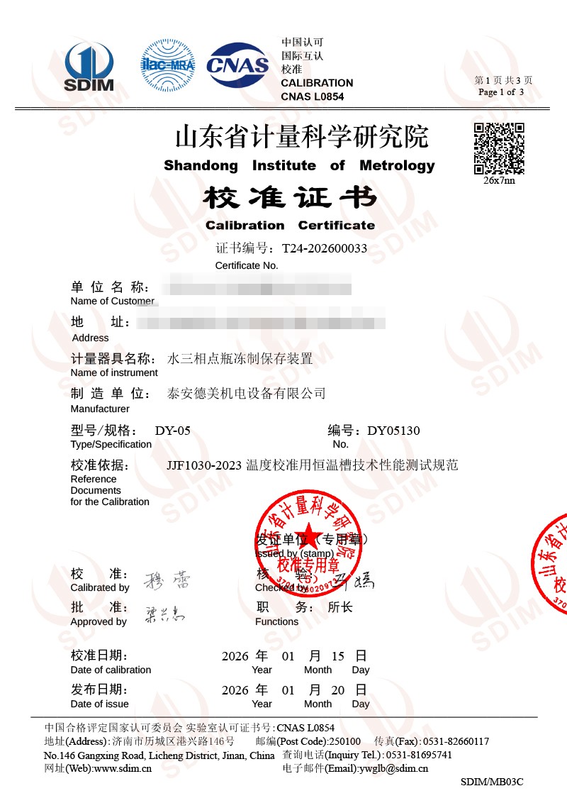 水三相點瓶凍制保存裝置-校準證書 2026-1-26 本文被閱讀 164 次