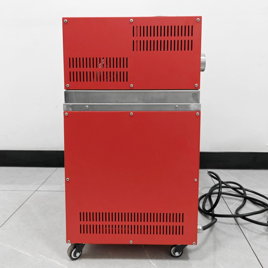 產(chǎn)品采用先進(jìn)的自動控制系統(tǒng),界面友好,操作方便,控制精度高。主要是由加熱系統(tǒng)、控溫系統(tǒng)、攪拌系統(tǒng)所組成。槽體分混合區(qū)與工作區(qū)。在混合區(qū)內(nèi)由加熱器產(chǎn)生的熱量使槽內(nèi)固態(tài)鹽(介質(zhì))升溫熔化成鹽液,當(dāng)鹽液溫度上升到接近設(shè)定溫度時,控溫系統(tǒng)根據(jù)感溫器測得的溫度來控制加熱器工作,再經(jīng)過攪拌系統(tǒng)的強(qiáng)烈攪拌充分均勻后的鹽液(介質(zhì))送入少受外界干擾的工作區(qū)。從而得到一個溫度穩(wěn)定溫場均勻的液體空間。