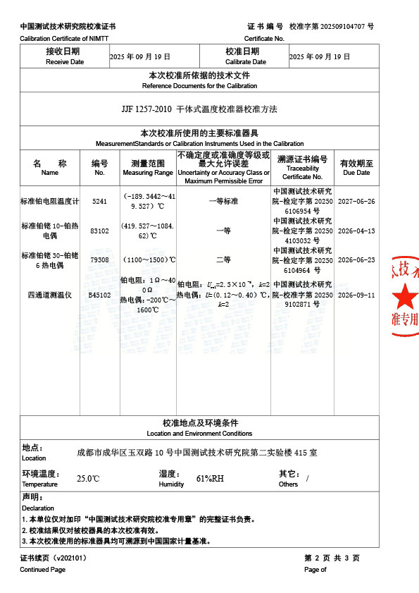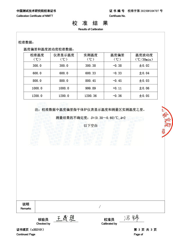 高溫干體爐(300-1200℃)校準證書 2025-9-22 本文被閱讀 635 次