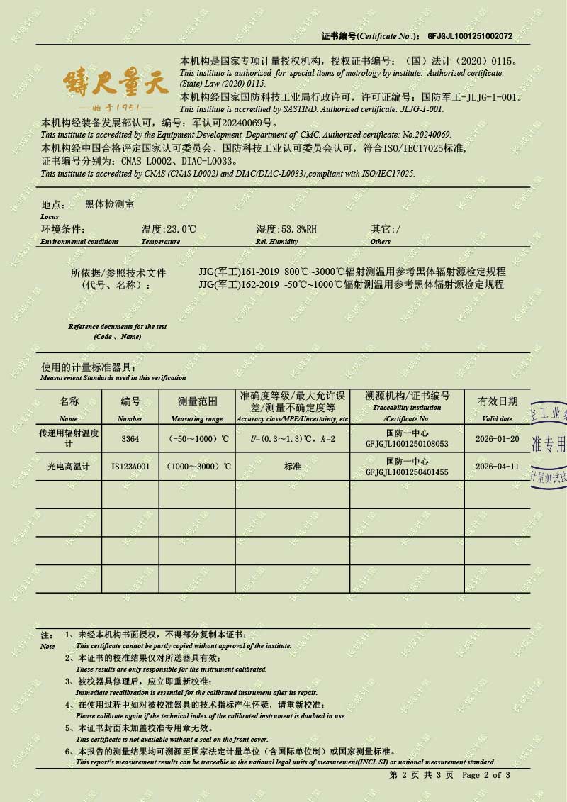 | 上一條:低溫液槽式黑體爐(-40-100℃)校準(zhǔn)證書 | 下一條:便攜式溫濕度檢定箱(-10-60℃)校準(zhǔn)證書 |