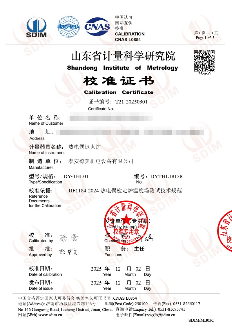熱電偶退火爐校準(zhǔn)證書 2025-12-4 本文被閱讀 1 次