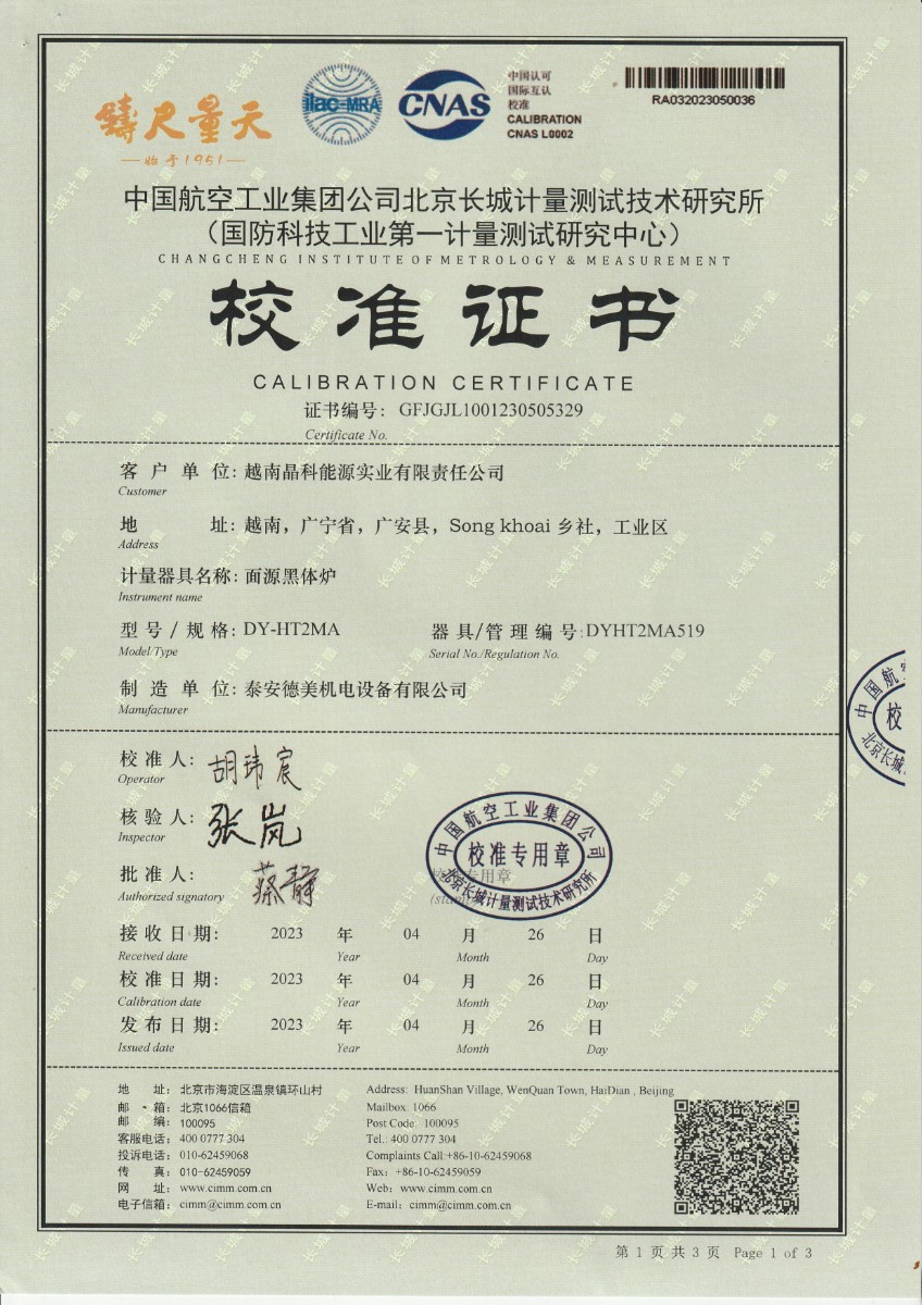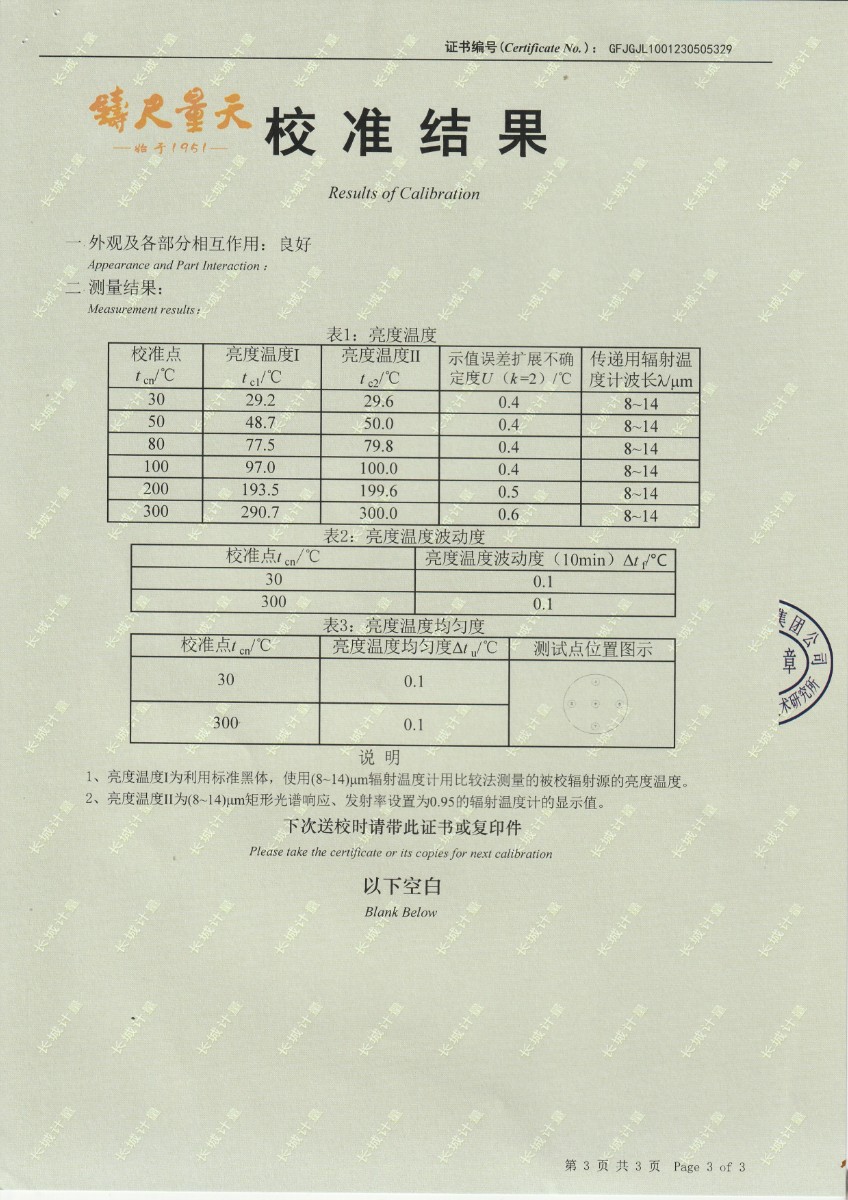 | 上一條:淮安捷泰新能源科技有限公司 黑體輻射源 校準(zhǔn)證書 | 下一條:露點(diǎn)儀檢定證書 |