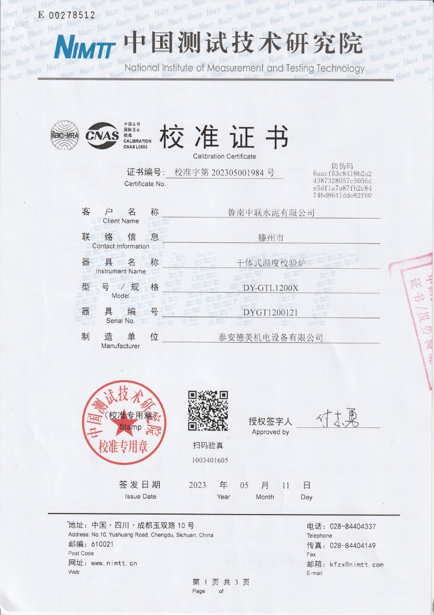 | 上一條:魯南中聯(lián)水泥有限公司 溫度校驗(yàn)儀 校準(zhǔn)證書 | 下一條:露點(diǎn)儀檢定證書 |