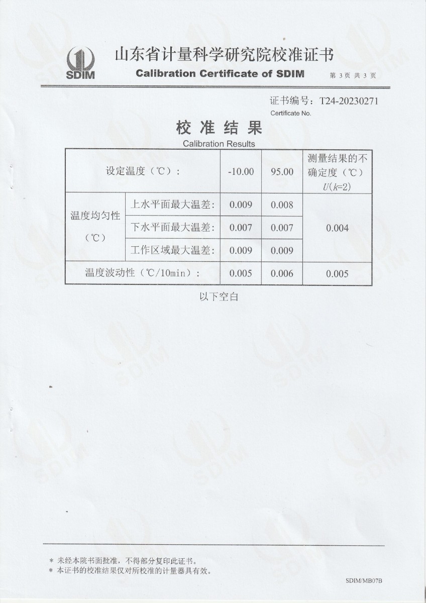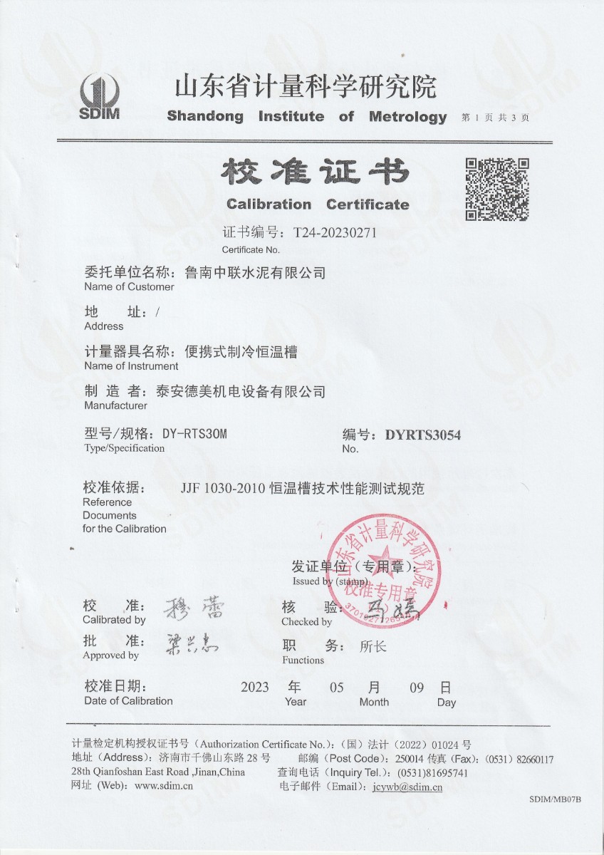 魯南中聯水泥有限公司 便攜式制冷恒溫槽 校準證書 2023-6-1 本文被閱讀 15026 次
