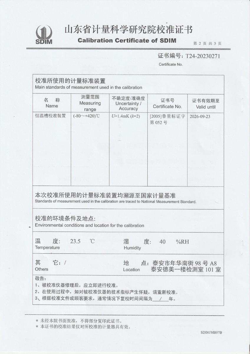 上一條:新疆中測測試有限公司 溫濕度標準箱 校準證書下一條:露點儀檢定證書