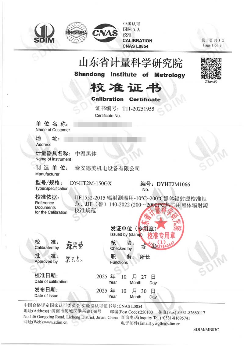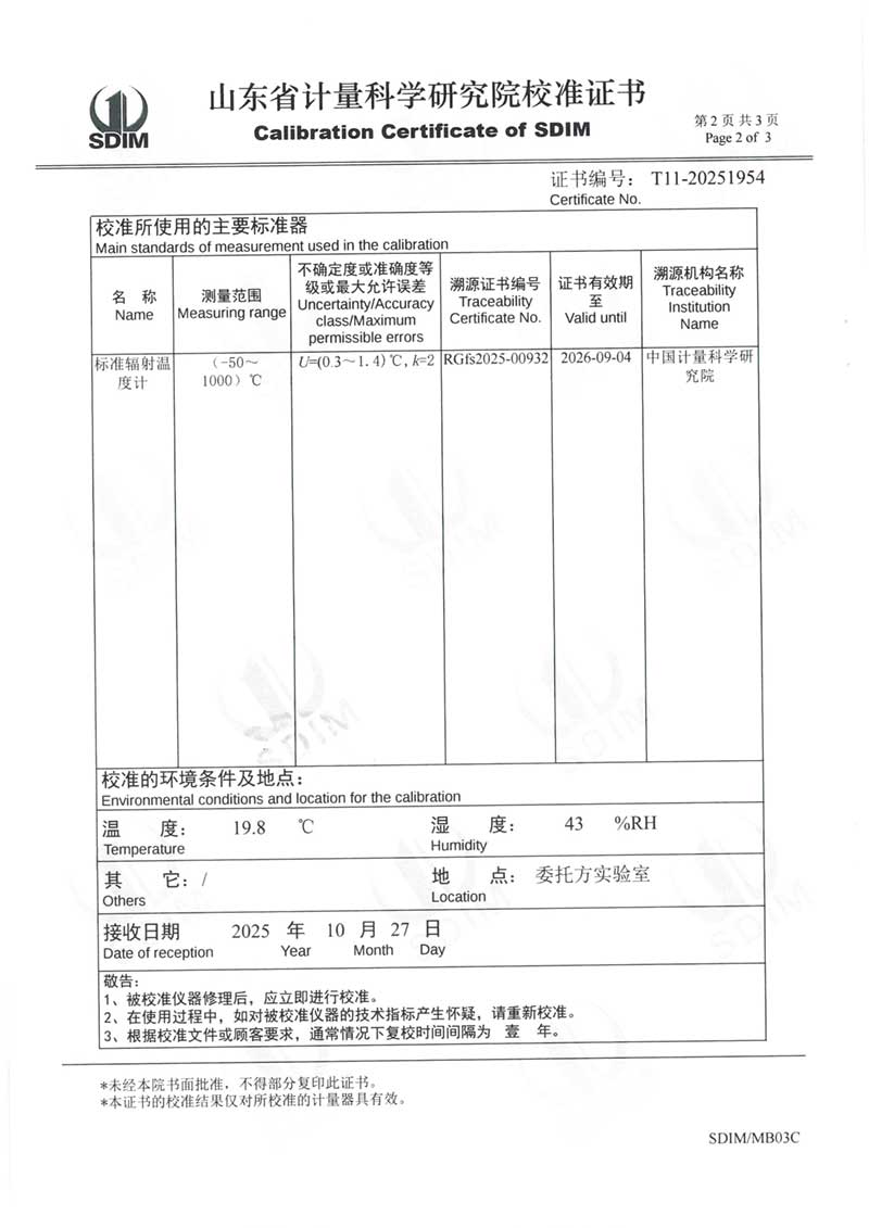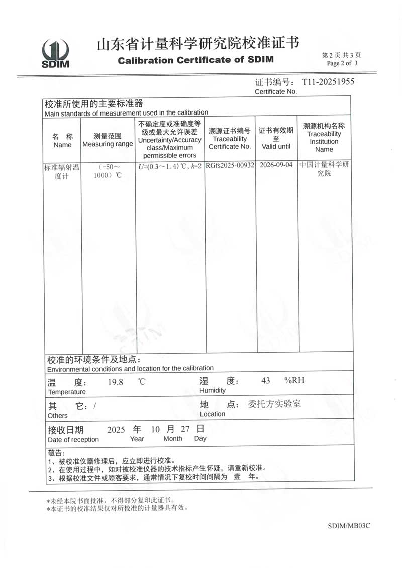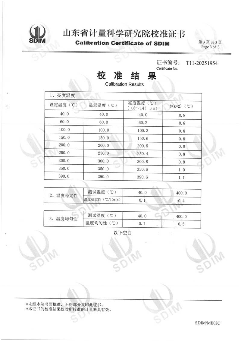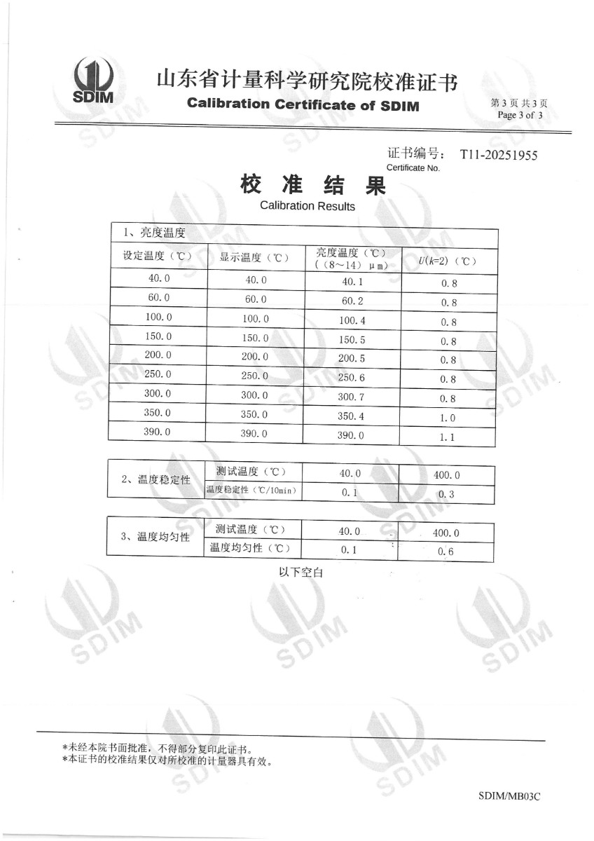 中溫黑體(室溫+5~400℃)校準(zhǔn)證書 2025-11-5 本文被閱讀 12 次