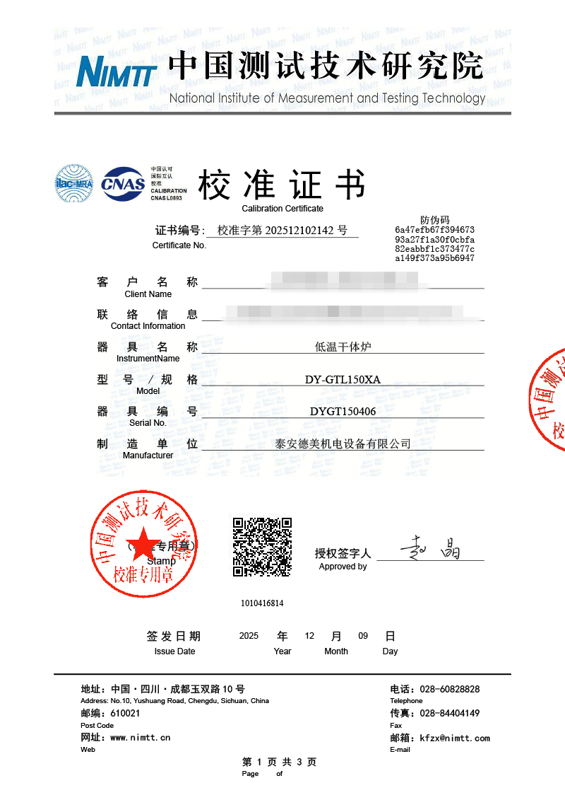 低溫干體爐校準證書 2025-12-11 本文被閱讀 31 次