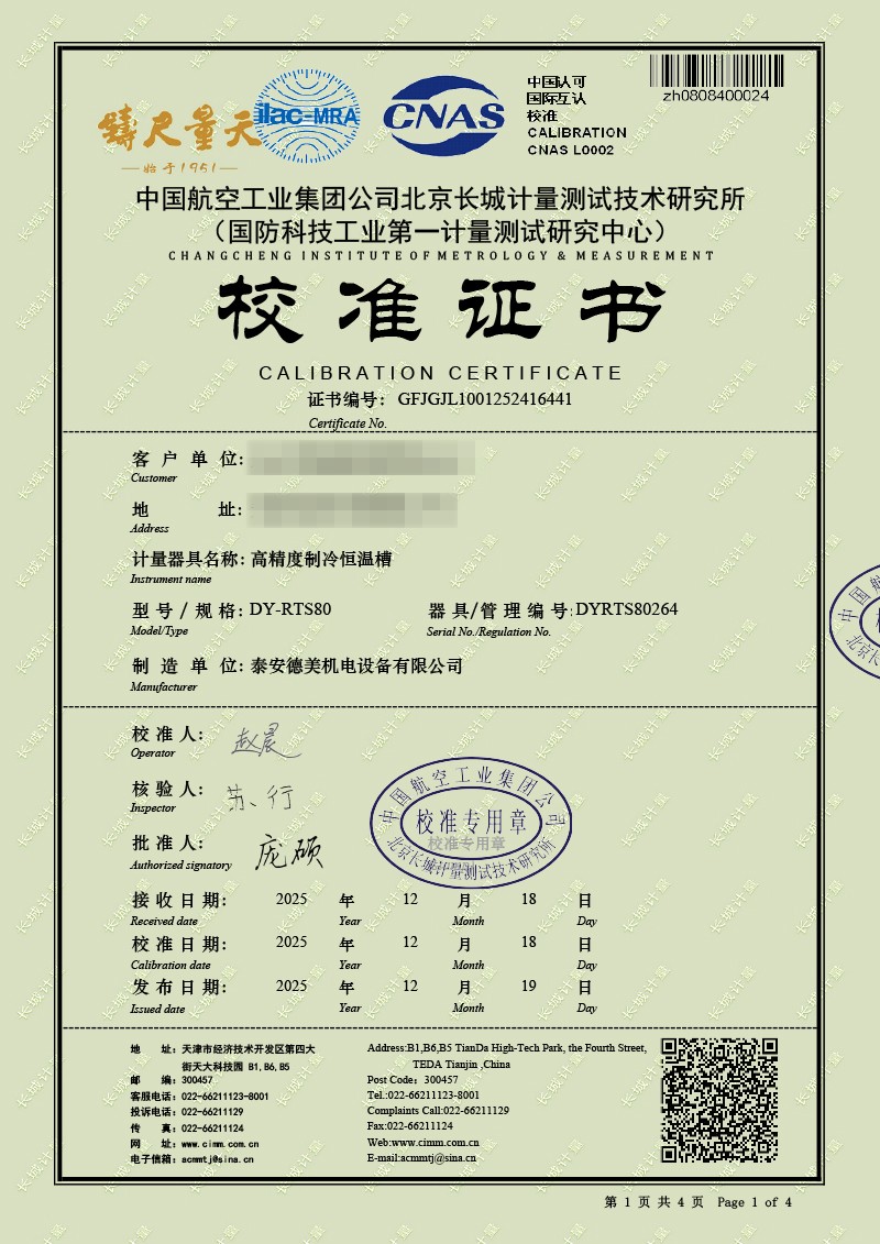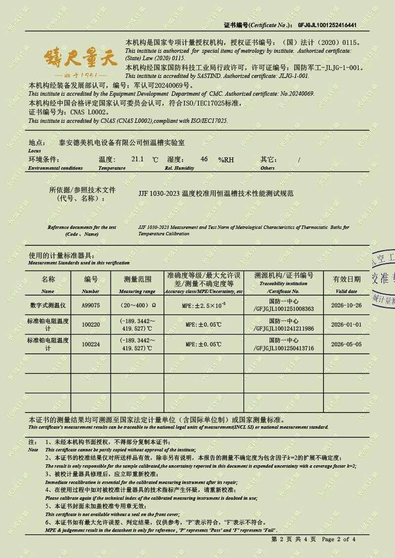 高精度制冷恒溫槽(-80~100℃)校準證書 2025-12-19 本文被閱讀 52 次